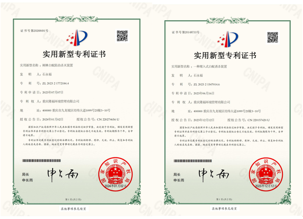 重慶隆福環境管理有限公司(以下簡稱“我司”)成立于2015年,另于2022年成立海南分公司。是一家從事專業白蟻防治、害蟲消殺、消毒防疫、園林景觀施工、滅蟲藥械銷售為一體的綜合性服務公司。